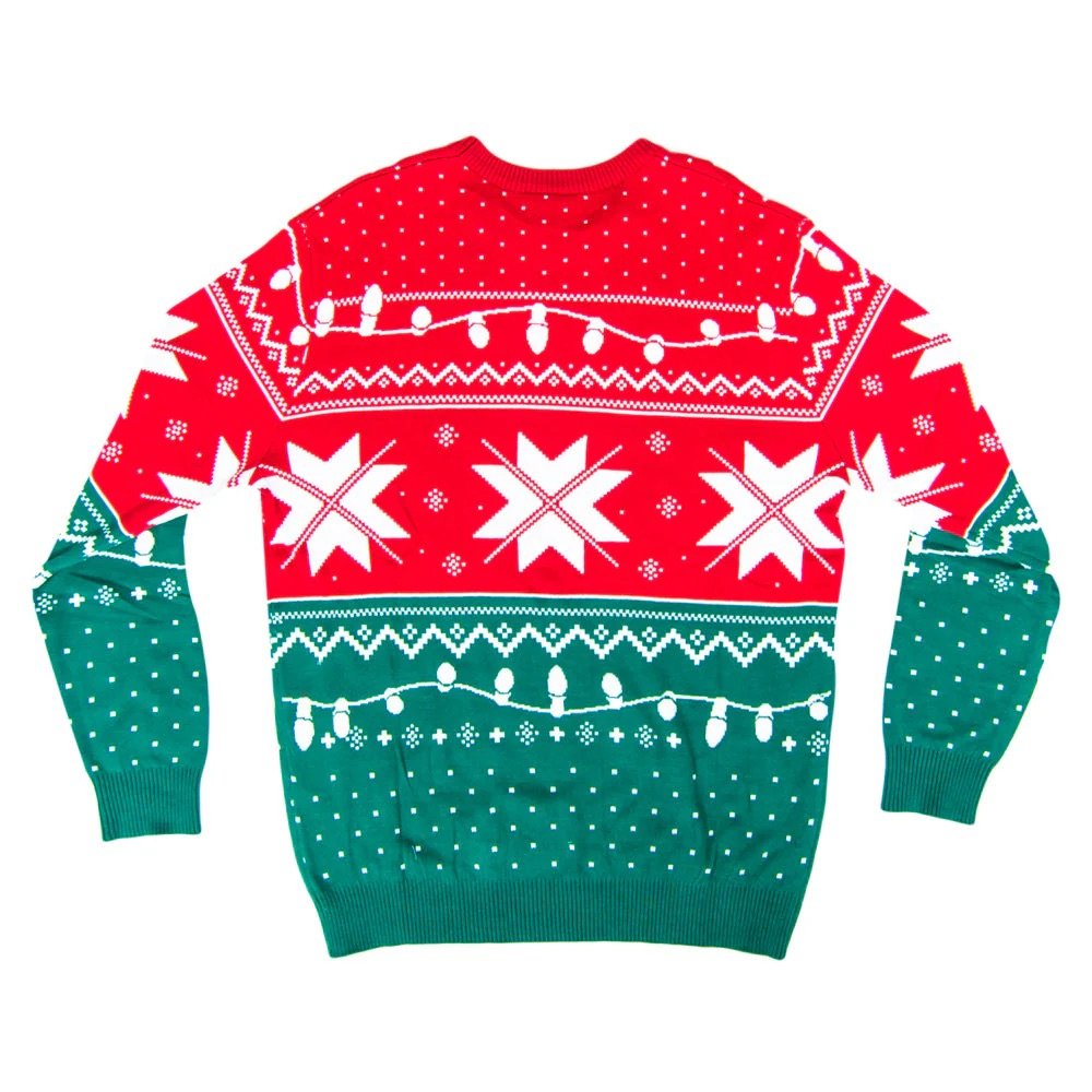 Crafted from the same soft, durable cotton-blend fabric as the rest of our ugly Christmas sweater collection, this piece is designed to be worn year after year. The prints are vibrant and fade-resistant, the stitching is reinforced at stress points, and the fit is comfortable enough for all-day wear — whether you’re pinning your family members in the Feats of Strength or simply lounging on the couch watching the Seinfeld marathon.